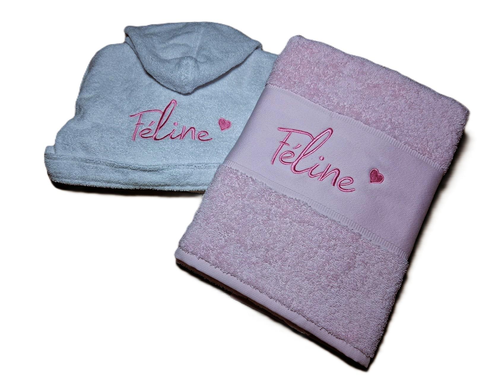 Naam wordt geborduurd op de rug van de badjas en in het midden op de band van de badhanddoek