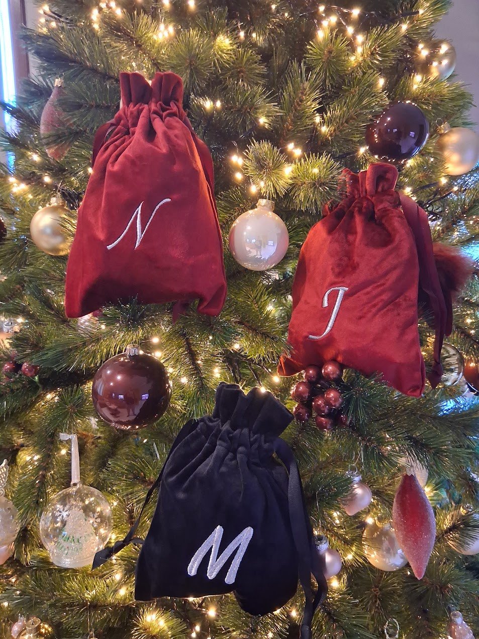 De letter wordt in het midden van het zakje geborduurd